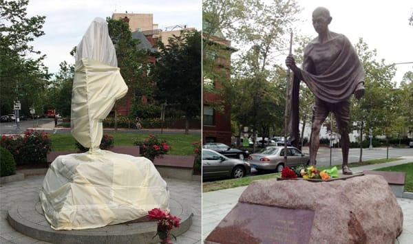 ওয়াশিংটনে গান্ধীমূর্তিতে ‘হামলা’, ঢাকা হলো কাপড়ে